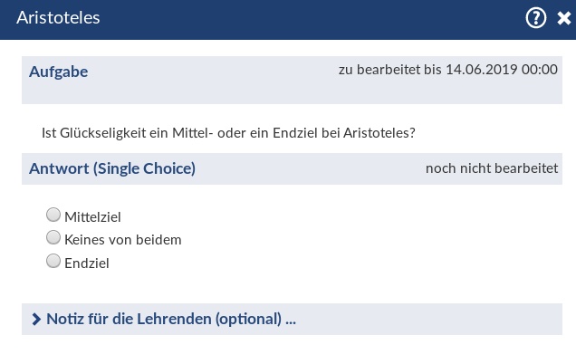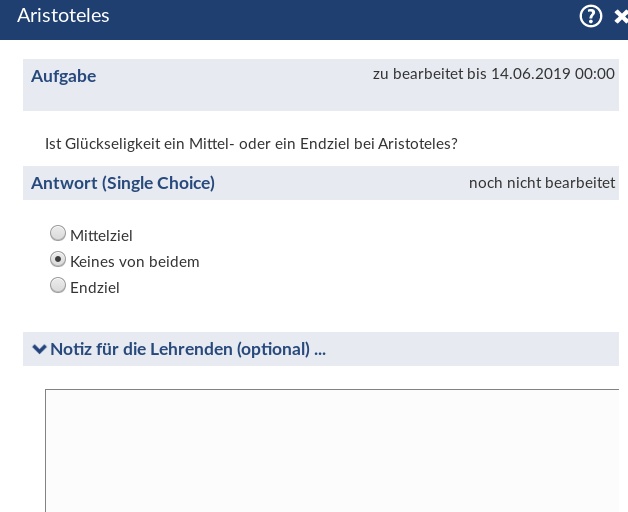 Wenn du den Lehrenden noch etwas zur Aufgabe mitteilen möchtest, steht dir die Notiz-Funktion zur Verfügung. Einfach auf die Überschrift klicken und ein kleines Textfenster erscheint:
