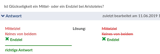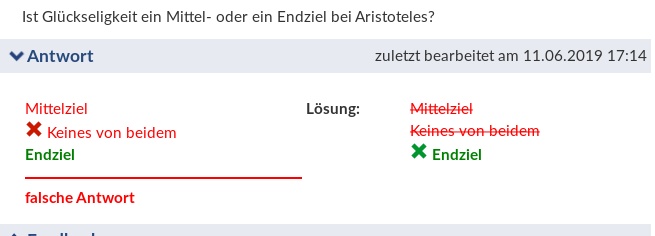 Hier wurde die Aufgabe richtig gelöst. Wenn du die falsche Antwort abgegeben hättest, würde das dann so aussehen: