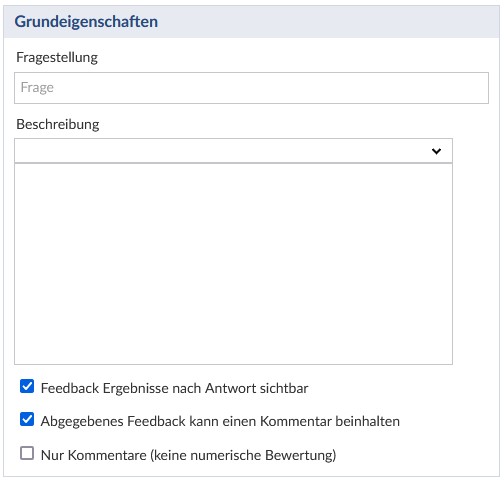 Unter Grundeigenschaften formulieren Sie Ihre Frage und ggf. eine Beschreibung. Weiterhin legen Sie hier fest ob: