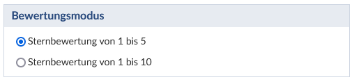 Unter Bewertungsmodus wählen Sie ggf. zwischen einer 5- oder 10-Sternebewertgunsmöglichkeit: