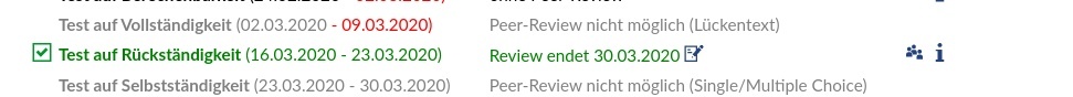 - Für die erste Aufgabe in der Liste ist grundsätzlich eine Peer-Review möglich, da die Bearbeitungszeit aber abgelaufen ist kann es nicht mehr aktiviert werden.