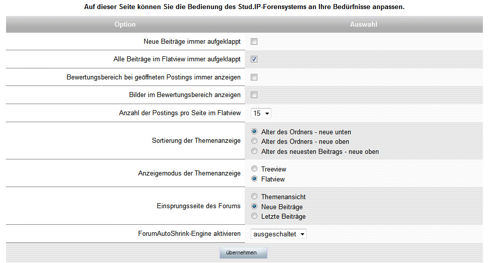 Sie können die Ansicht des Forensystems Ihren Vorlieben anpassen.