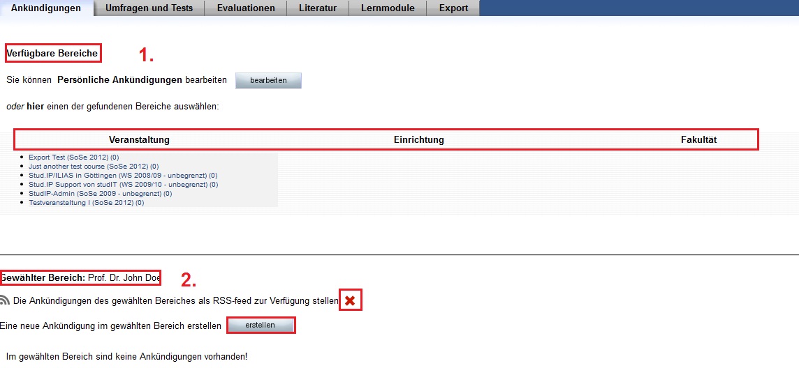 Stud.IP bietet Ihnen auch die Möglichkeit, selbst RSS-Feeds anzubieten. So können andere Stud.IP-Nutzer, oder falls Sie DozentIn sind, auch TeilnehmerInnen Ihrer Veranstaltung, Neuigkeiten als Feed abonnieren.