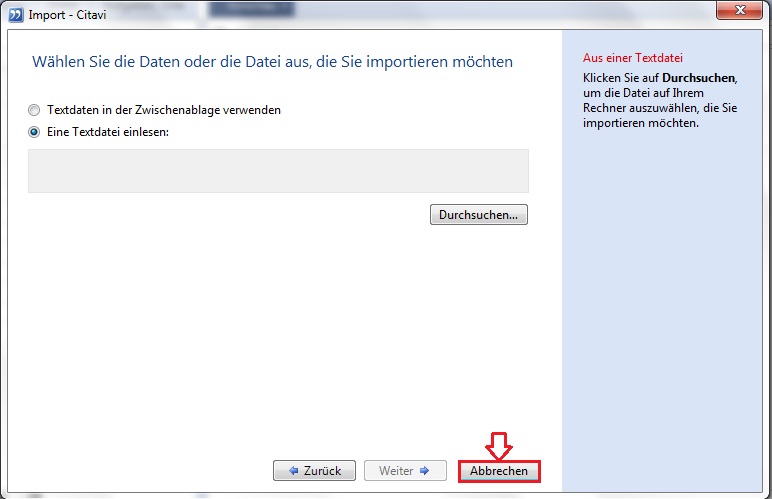 6. For the last step please click on "cancel". The importfilter got ad to Citavi.