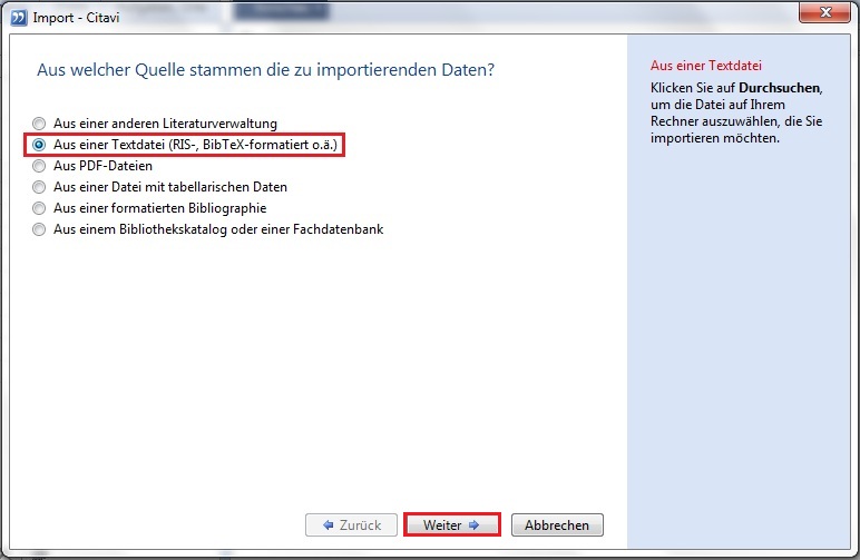 1. Choose within Citavi from the menu "data" the command "import".