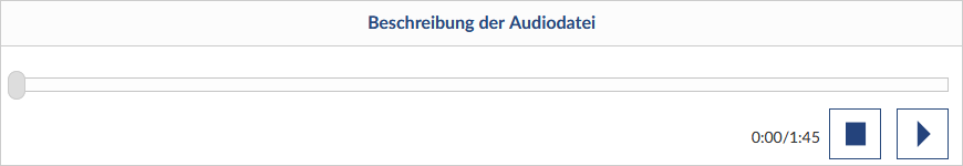 In the audio block, an audio file from the file system or from an external URL can be integrated into courseware. The courseware audio player enables the functions play, pause and stop. Fast forward and rewind is possible via the progress display.