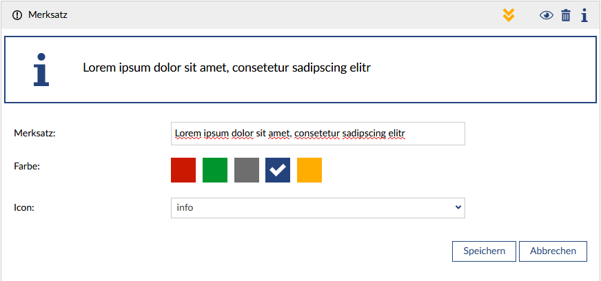 The key point block enables information to be highlighted. You can choose from 5 different colors and over 60 different icons.