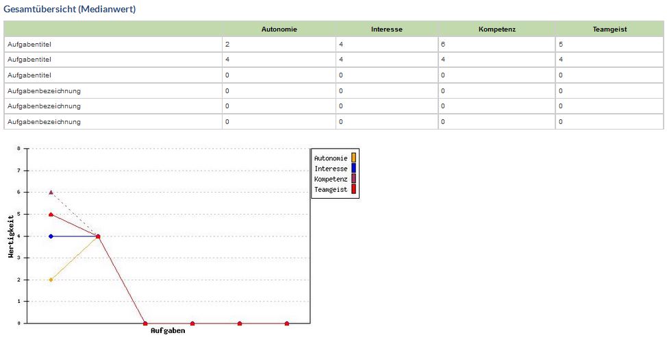 Participans can answer the motovotoring questions after they finished they tasks.On the statistik page you can see two tables and the corresponting grafic.