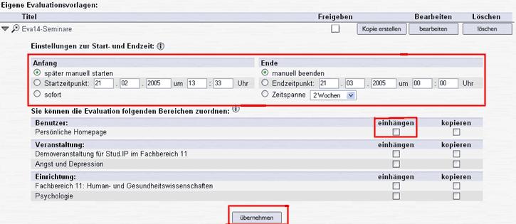 On the difference between attaching and copying: If you attach an evaluation, no new instance of the questionnaire will be generated. Regardless of from where the questionnaire is filled out, the entries are written in the same dataset. The data are pooled.However, if you copy an evaluation into an array, a completely new dataset is created.