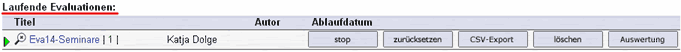 In Stud.IP you have the opportunity to conduct evaluations. In this context, you can resort to public evaluation templates or also prepare your own evaluation templates. You must be on the Administration page of the course in which your want to publish the evaluation. Click on the Evaluations subitem there.
