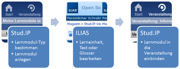 The following steps belong to the production of ever kind of ILIAS-modules within Stud.IP: