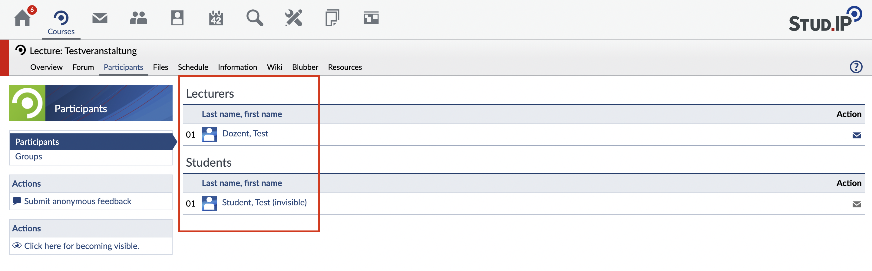 In general, the following applies: if the name of a person is indicated as a link (blue color), this refers to the profile. That can be lecturers or participants, the author of news or postings and many others. Do not be afraid to click on names — you cannot, e.g., unintentionally send emails.