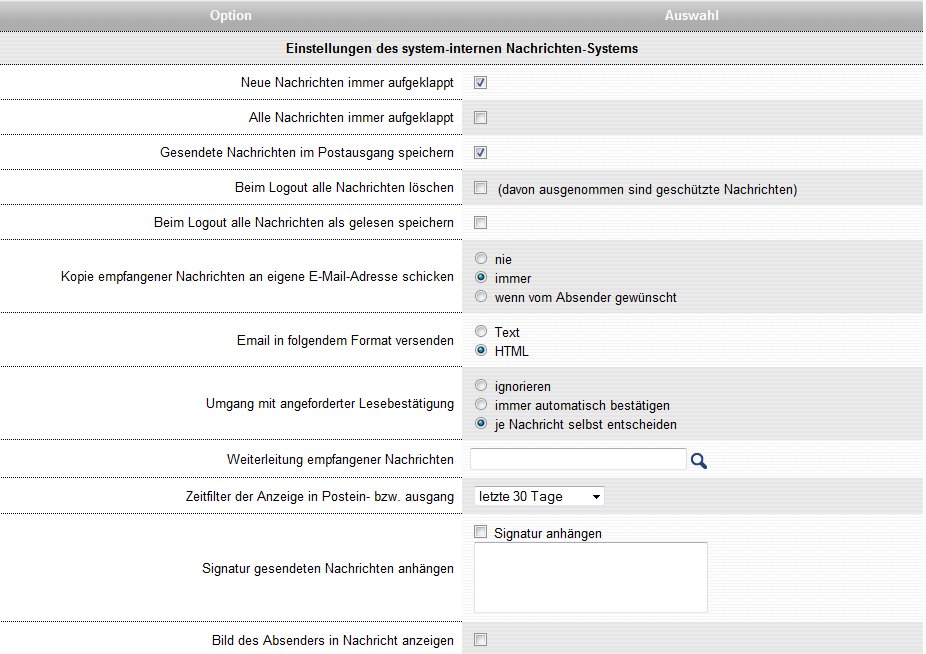 Here you can create your own settings for Stud.IP's Internal SMS and Messenger systems.