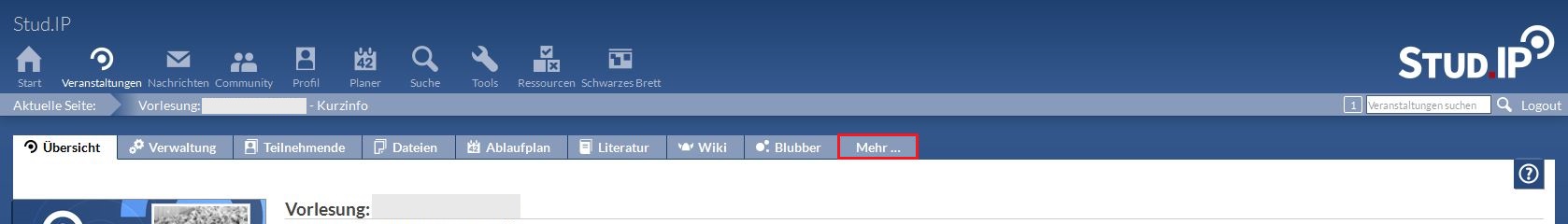Click on the course where you want to use the learning module to activate the tool. Click on the menu item "more...". At this page you can configurate your courses content elemnts and activate or deactivate further plugins.