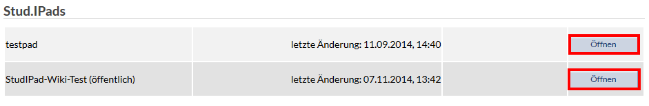 -Symbol in the course overview to have the set StudIPad of the course advised. Subsequently you can open the StudIpad by clicking on the "open" button.