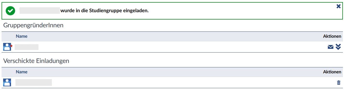 The invited person receives an e-mail with a link to your study group. With a click on that link the person enters the study group. Until then the person is listed under "participants" at "sended invitations".