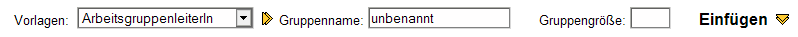 With this line you can create a new function or group. In the Templates field you find a number of group names which are appropriate for your area (institute, teaching course, research project, etc.). In order to adopt one of them, click on the yellow double arrow