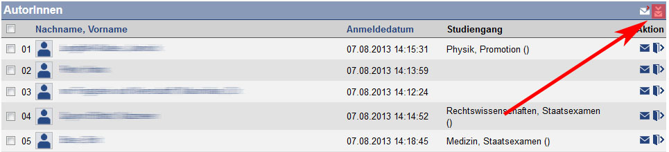 Attach:Warteliste1.jpg Δ On the registration and waiting list – as well as on the normal participant list – you can see the course of study of the user. This is important if you would like to see during the first session of the course if all the attending students did get into the course and what course of study they belong to. Simply print out the participant list via the print function of your browser.