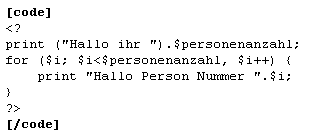For computer scientists and those who still desire to become one, there is also a tag with which one can make programme code visible in Forums. Simply use the expression [code]