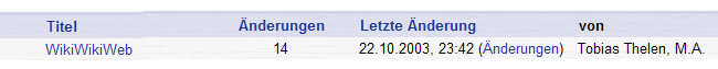 The List of all pages functions similarly to the overview of new pages. You will also find this menu item on the upper menu bar next to “New pages”. All the existing pages are listed there. By clicking on the column headings it is possible to sort the list by page title, number of changes, and the last date of change.