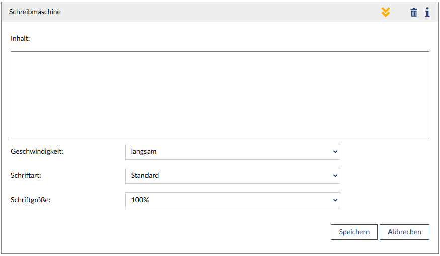 Dieser Block lässt einen Text Zeichen für Zeichen erscheinen.